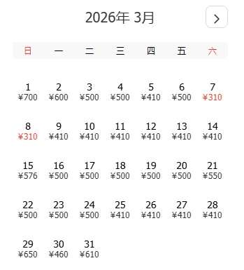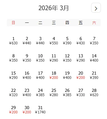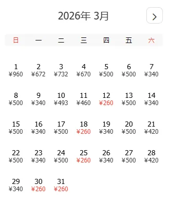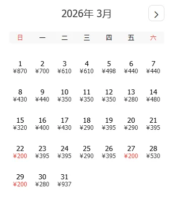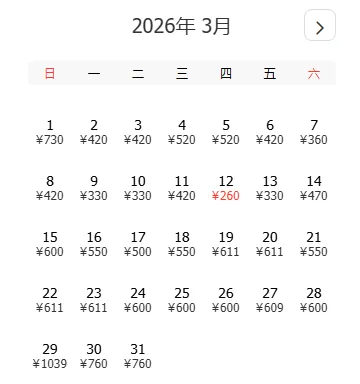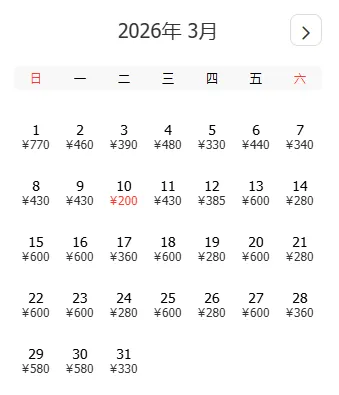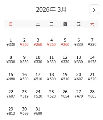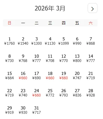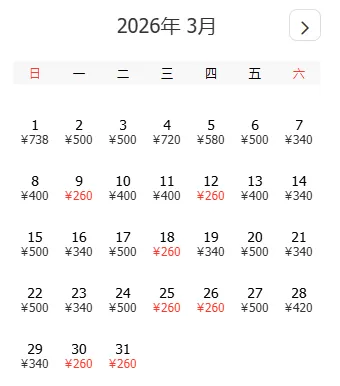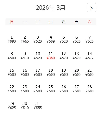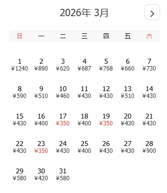 去程和返程最低价不一定按照时间顺序排列,大家根据自己的出游计划选择合适的时间