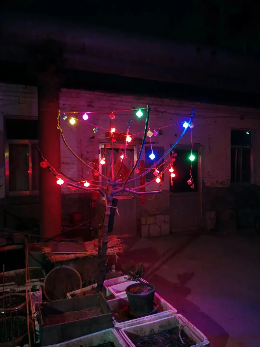 小区里一棵霓虹灯树,拍摄于2026年2月16日20:09