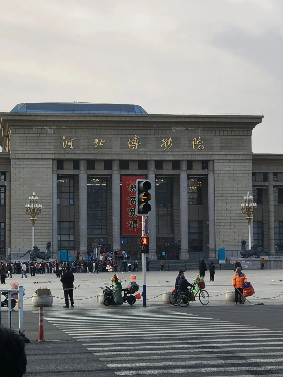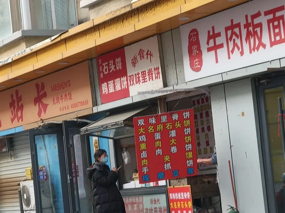 然后,我们从这里打车前往棉二早市,因为这里离河北省博比较近,打算吃个早饭直接去省博。可是这里也因为过年,店铺都不开门,连新华蒸包这样的早餐店都大门紧闭,只有一家杭州小笼包店开着,除了吃这个别无选择。进店后发现所有单品都涨价3元,本来10块一笼的小笼包卖13,就连3块一碗的粥都卖6块,简直是垄断!我没敢问两块钱的茶叶蛋他是不是也要卖5块,只点了2笼包子和2碗粥,一共38块钱。当天石家庄天气很热,包子店里面开了暖气就更热了,吃完饭后我浑身是汗,索性直接把外套脱下来,在店门口散散热。