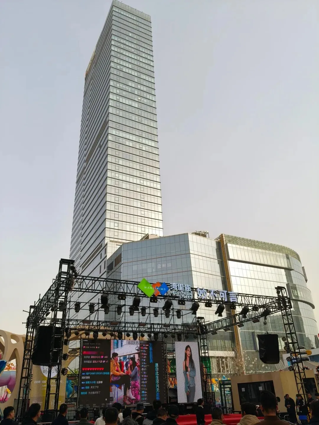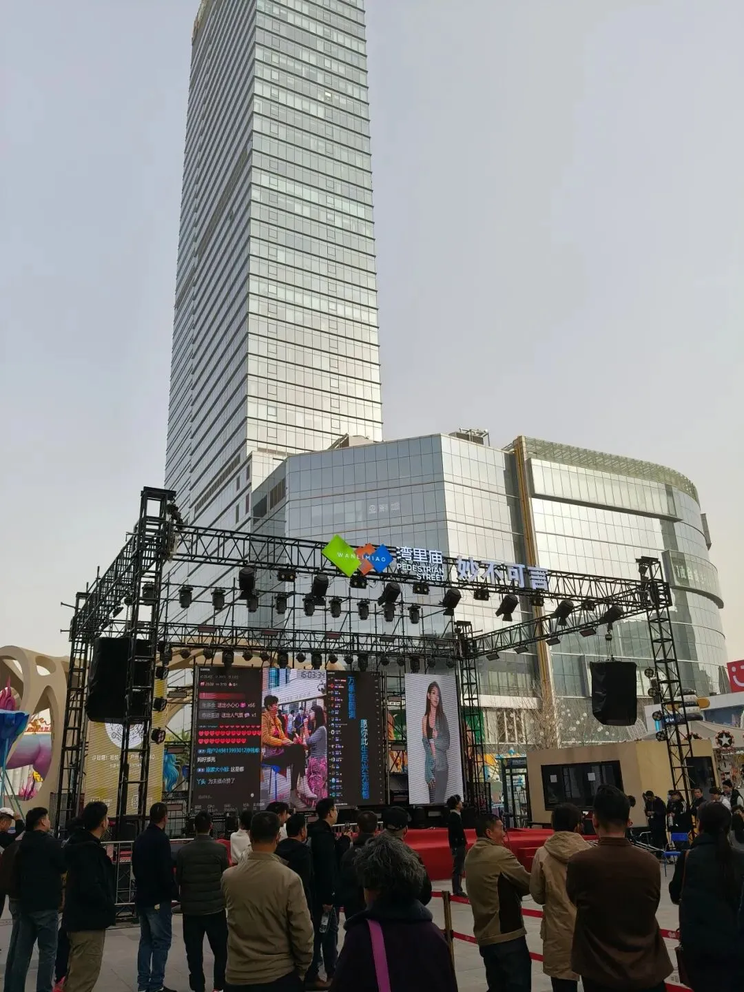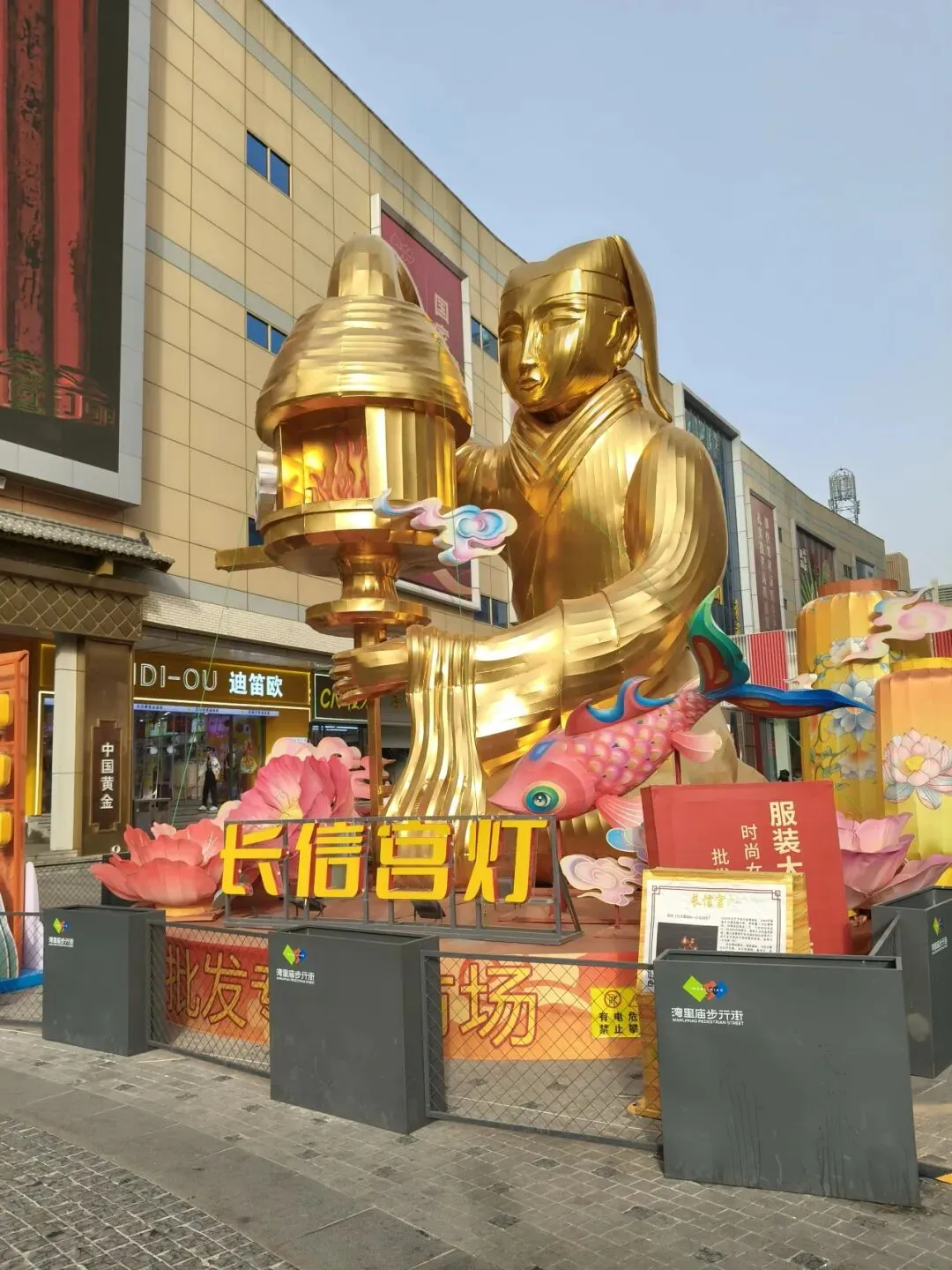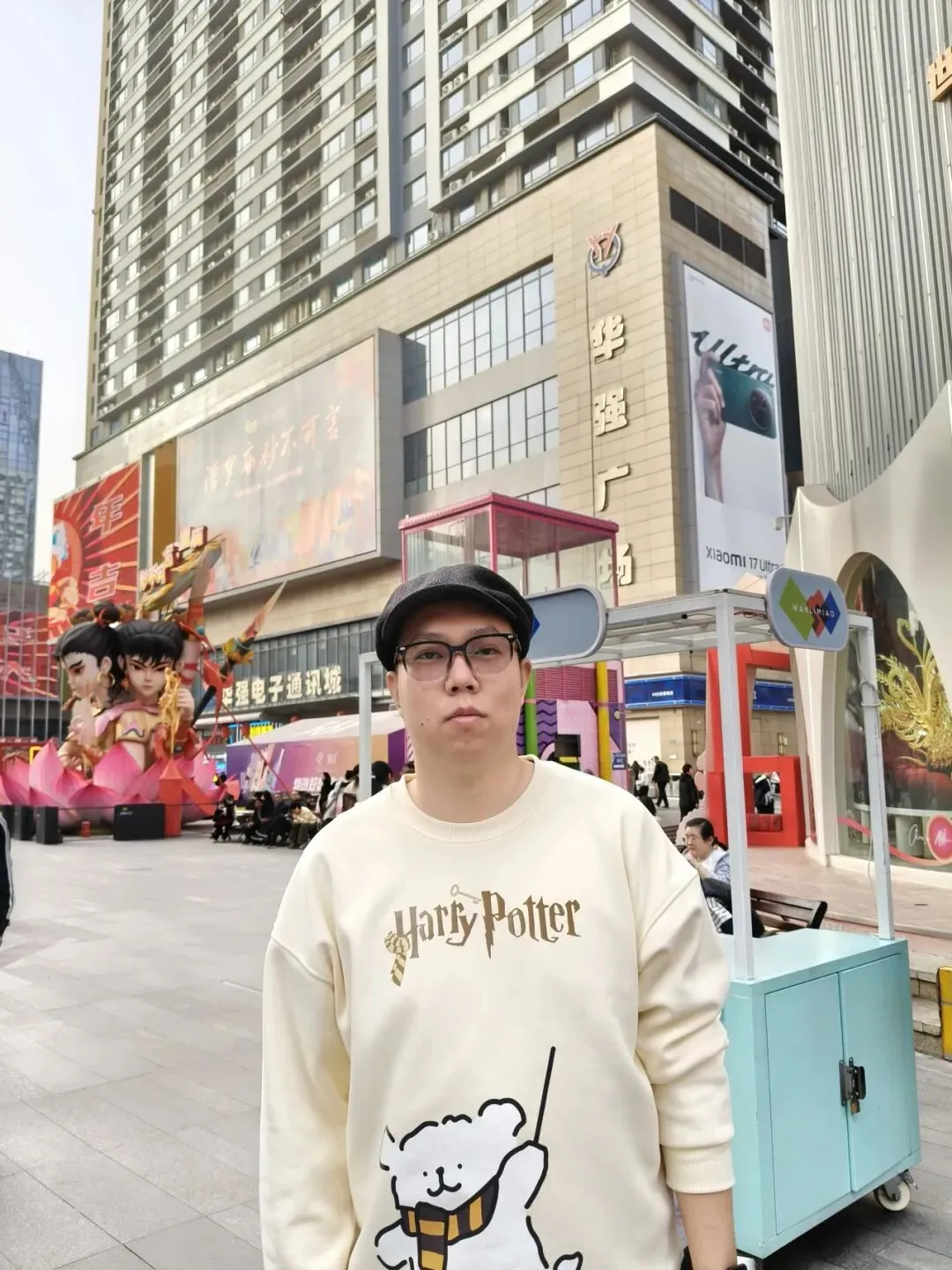 因为出来之后风和沙尘暴还是很大,我们不想再走到地铁口了,所以直接打了个车到解放广场。正太广场和石家庄的步行街也都在这里。这个步行街很长,占了两个地铁站之间的距离。路上的红绿灯也很有特色,灯是熊猫头和心形的。街边还有一个商场叫“华强广场”,也可以假装自己到了深圳。