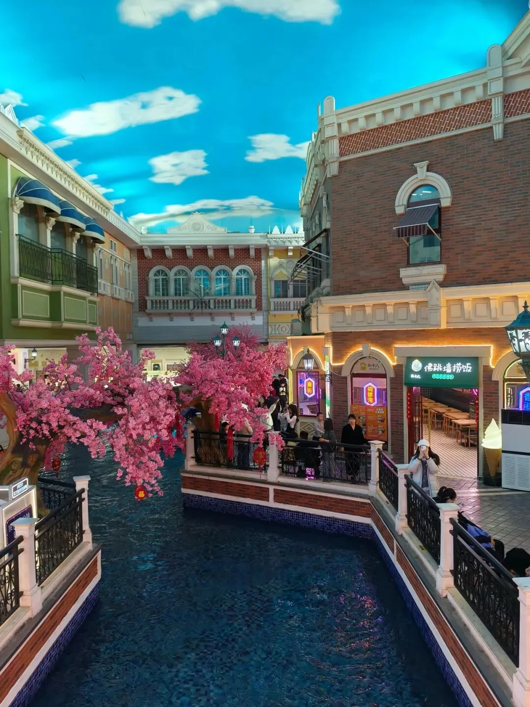 这时石家庄开始刮起了沙尘暴,天都变成了灰蒙蒙的了,呼吸都能闻到土味,我们不敢在外面多待,便立刻回到地铁站,准备去海悦天地。这个商场虽然本身没什么特别的,但是商场的四楼却有一个模仿模仿威尼斯的澳门威尼斯人的室内大厅,可以当做澳门或者威尼斯的平替。这里也可以划船,虽然河短了点,但是胜在便宜,澳门威尼斯人的船票一个人就要158,包船更是要700,但是这里包船只要30来块,700块估计和老板商量商量可以划一整天了。