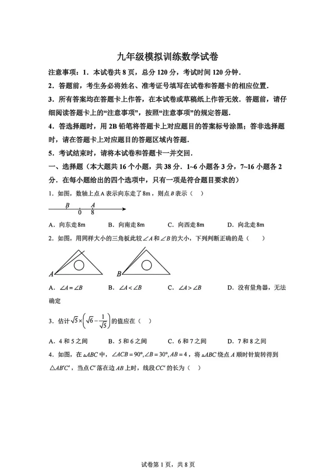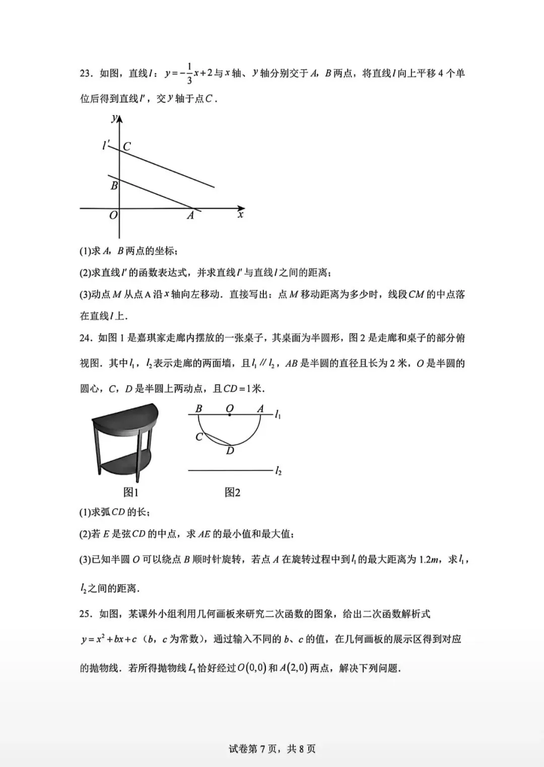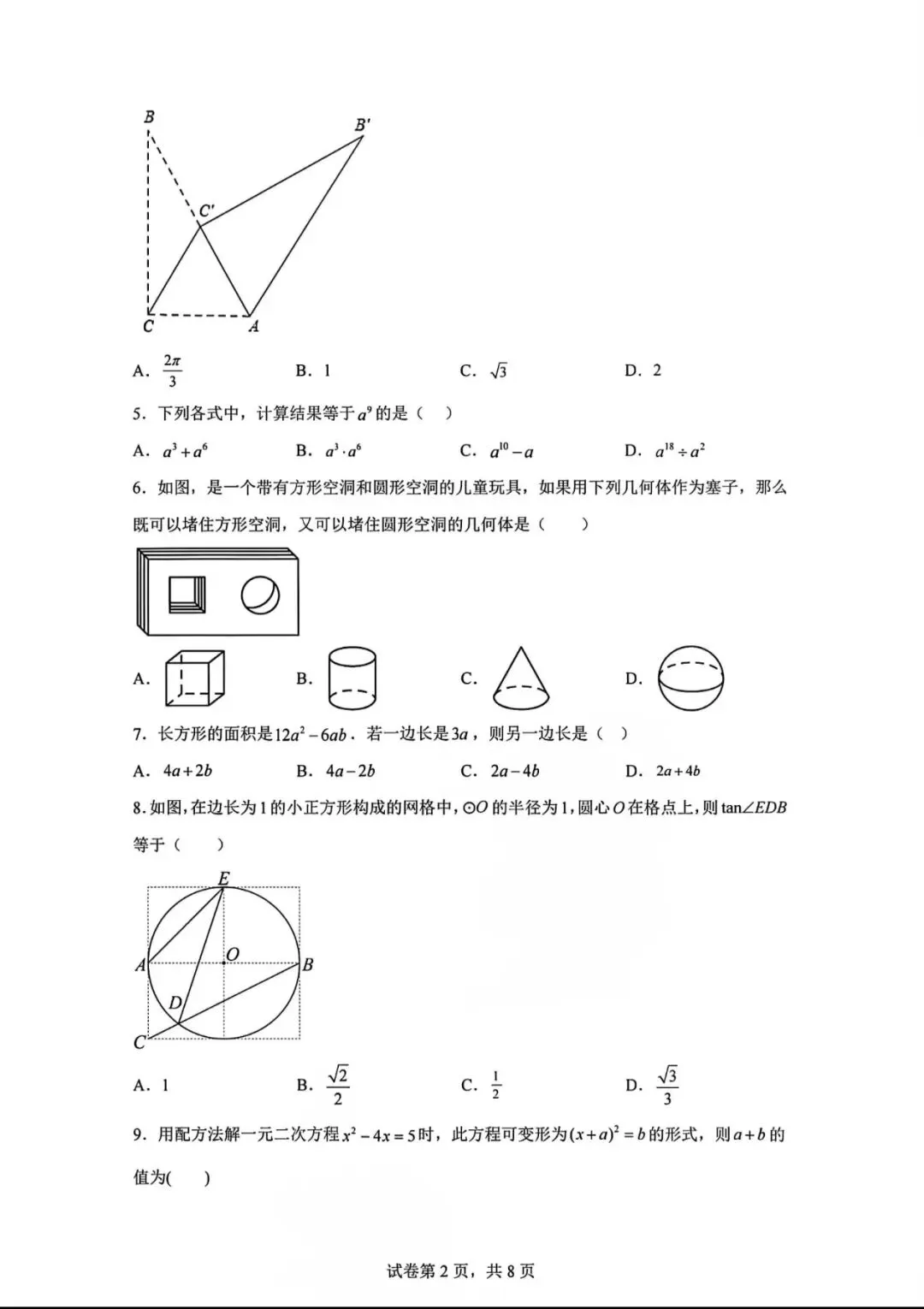 2026.1河北省九年级结课考试数学试卷