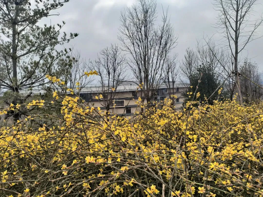 在山坡上还有几片地方的迎春花也开的正盛,黄黄的小花朵,似乎与红梅花遥相呼应,让整个梅岭春早公园“名至实归”了。