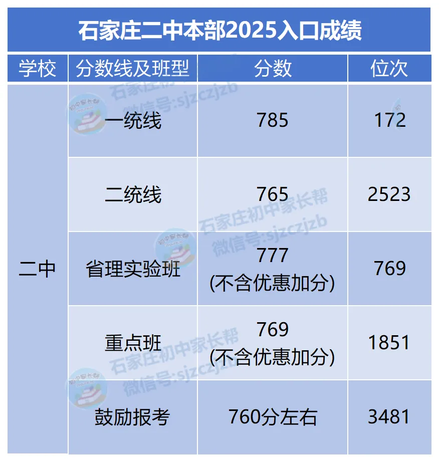 >石家庄二中教育集团各学校2025级入口成绩汇总!