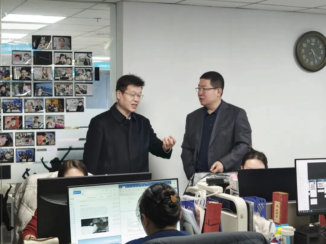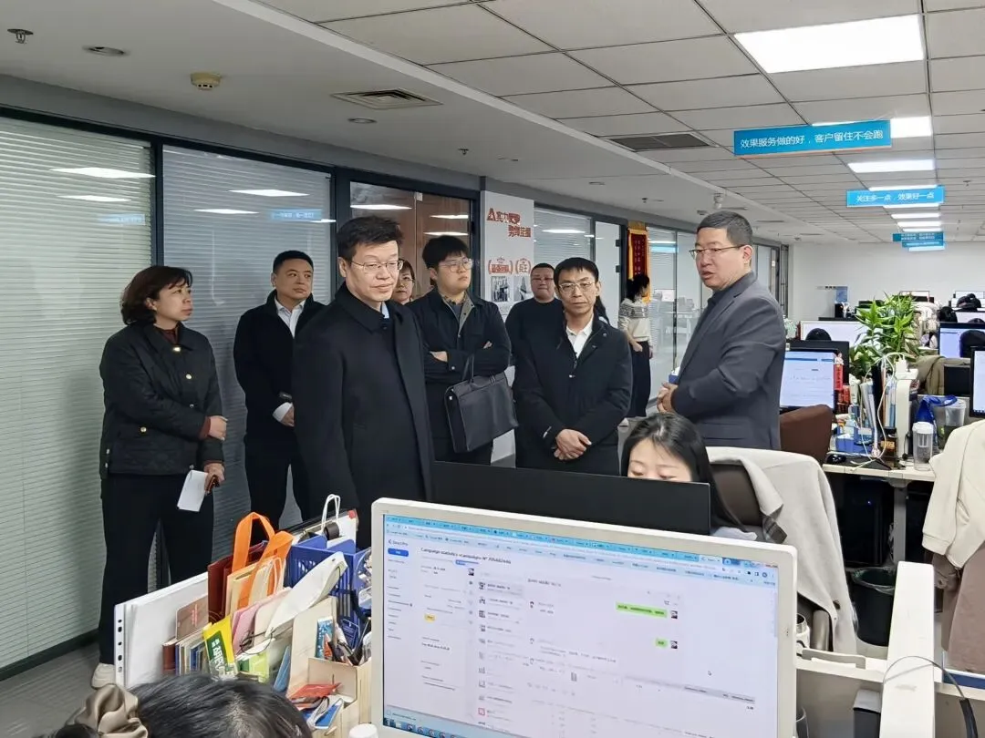 随后,楚臣一行来到推广部、技术部及研发中心。在技术部,他驻足观看设计师操作,并就海外独立站的视觉呈现与品牌建设提出见解;在推广部,他询问了多渠道营销的策略与效果,了解如何精准触达目标客户;在研发部,他重点关注AI技术和大数据分析在外贸领域的应用前景,鼓励企业继续探索前沿科技,助力更多本地企业开拓国际市场。