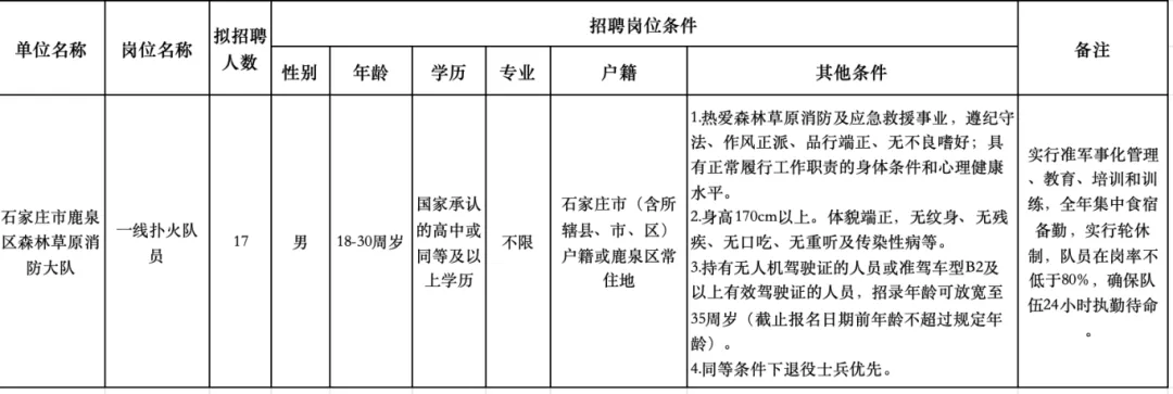 2026年公开招聘一线扑火队员