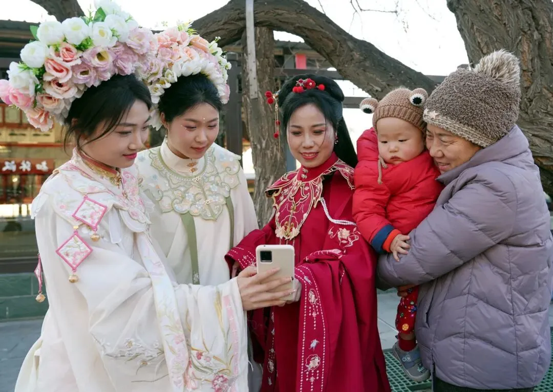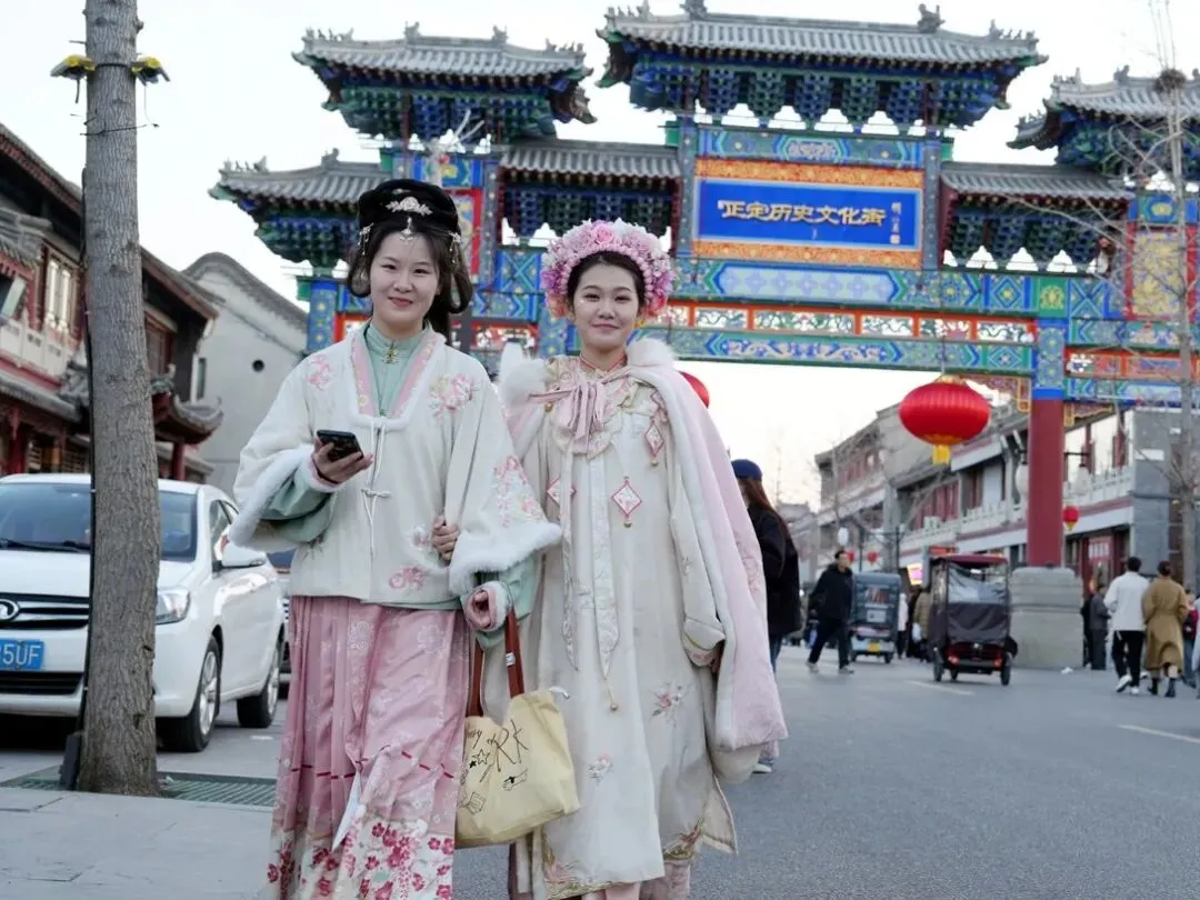春节假期,许多游客穿着汉服在正定古城拍照打卡,成为街头亮丽的风景。尹清国 摄(此图文发表于“学习强国”石家庄学习平台2026年2月25日)