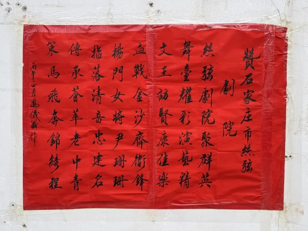 2月25日下午,石家庄市赞皇县布古庄村戏台前人头攒动,2026年石家庄市丝弦艺术中心文化进基层惠民演出正在这里上演。台口一侧张贴的红纸上,用毛笔手写的这首诗,赢得了乡亲们的叫好,也让演职员们备受鼓舞。