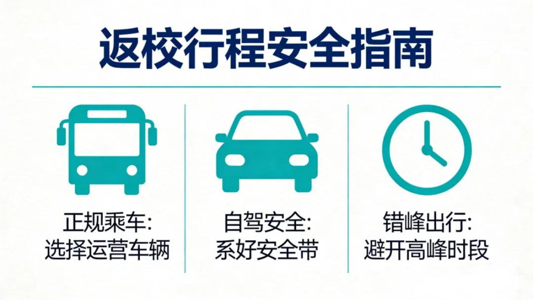 3. 错峰预留时间:返校高峰易拥堵、票紧张,提前规划路线,预留充足乘车时间。