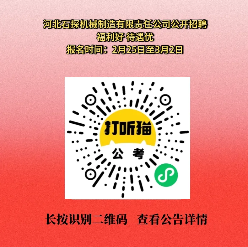 >【石家庄招聘】河北石探机械制造有限责任公司公开招聘!