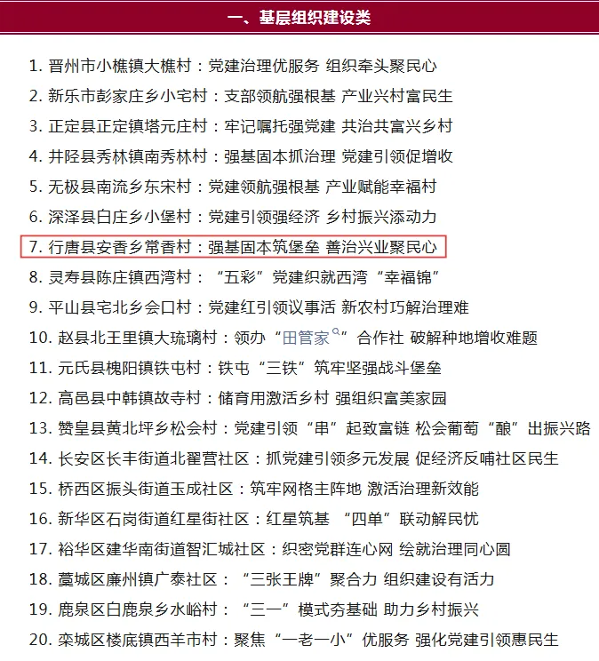 2026年2月26日,石家庄发布公布了《石家庄市村(社区)党建引领基层治理“百佳案例”名单》,我县多村上榜。来看具体名单!