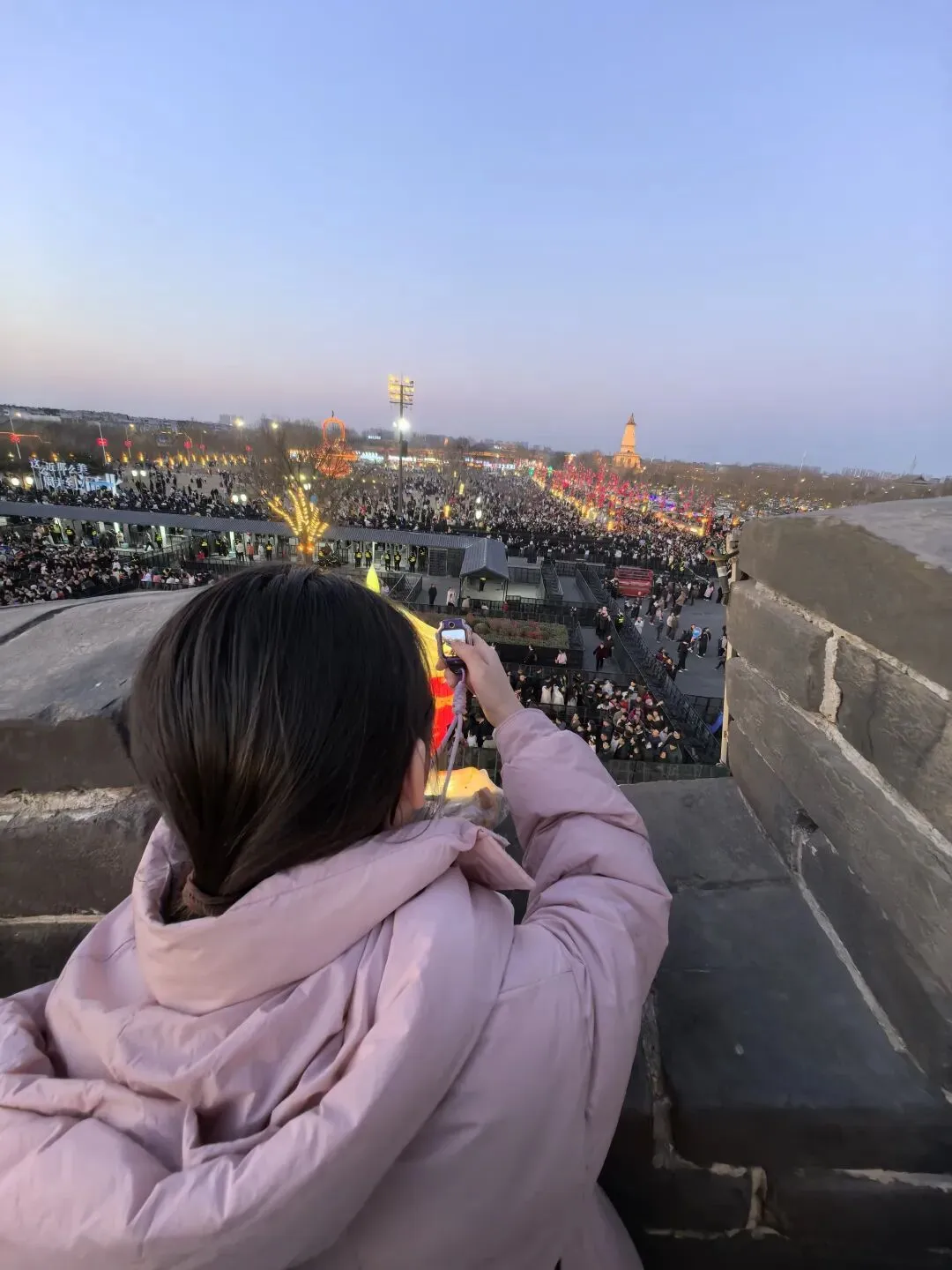 又一年加入“攻城”大军~错峰吃饭,天黑前就排队(来都来了,其实酒店边上的花灯一样很精致)。上城楼后才意识到!怎么那么多人啊!