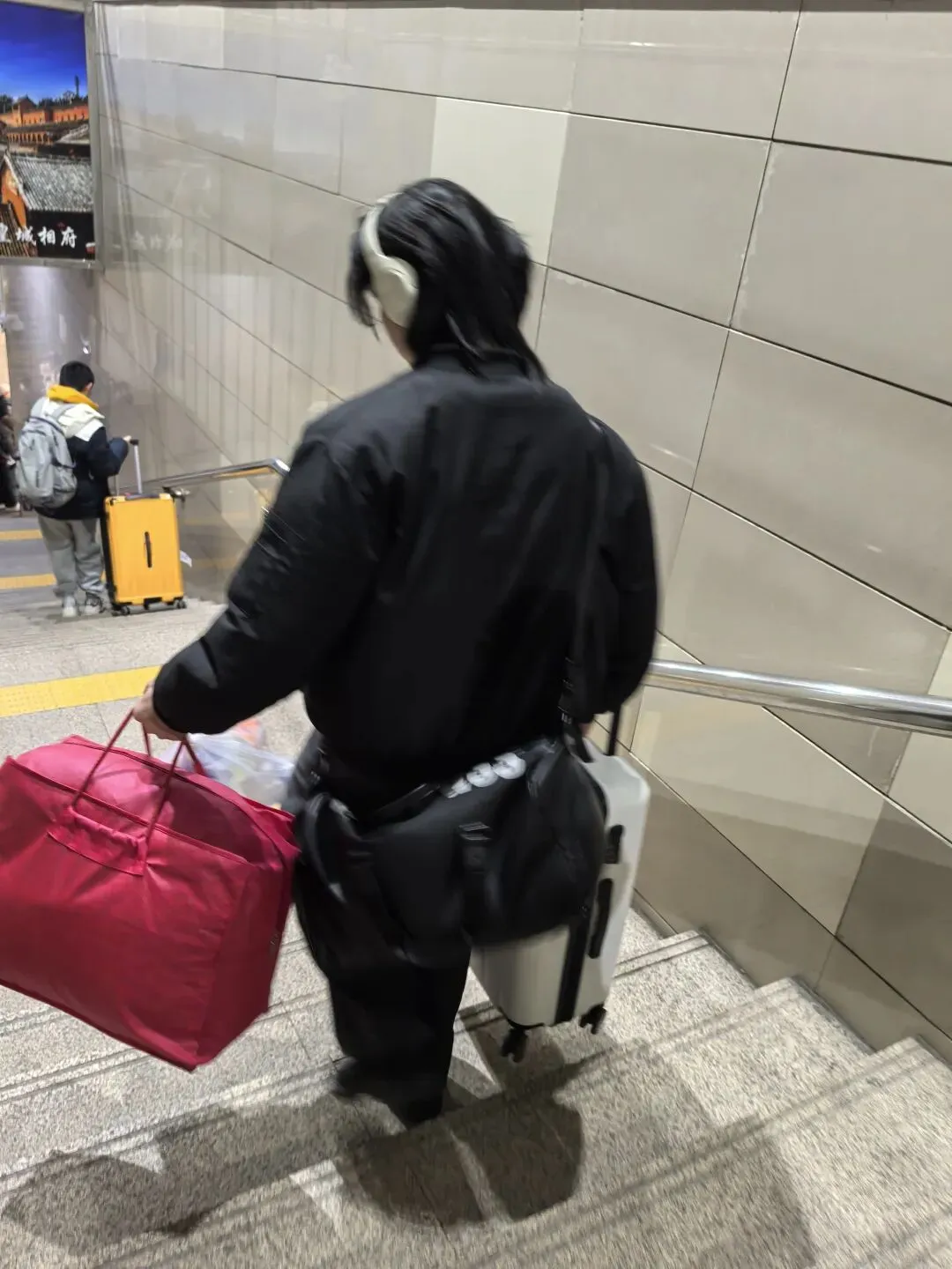 博物馆出来搞定晚饭,启程下一站—太原,太原老站下楼没有电梯,好心小哥哥拎起团子的行李箱就走,连声谢谢都来不及说就没影了~“多谢多谢!”