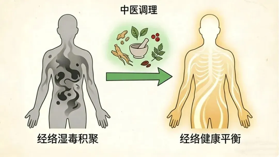 1. 湿毒积聚:如同潮湿阴暗的角落容易滋生霉菌,体内湿气过重,为病毒的生存提供了温床。 2. 气血瘀滞:循环不畅,犹如河流堵塞,免疫细胞无法顺畅到达“战场”,导致局部防御能力下降。 3. 正气不足:中医讲“正气存内,邪不可干”。正气即免疫力,正气亏虚,便无力抵御外邪的侵袭。 |