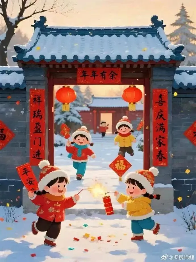 评:述写春节情景,一派红火。更像是春联。