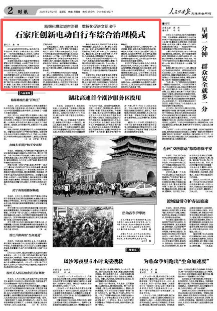 《人民公安报》刊发“石家庄创新电动自行车综合治理模式”专稿
