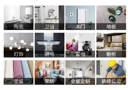 装修材料:涵盖瓷砖、地板、卫浴、门窗、涂料、壁纸等,满足不同装修风格需求。