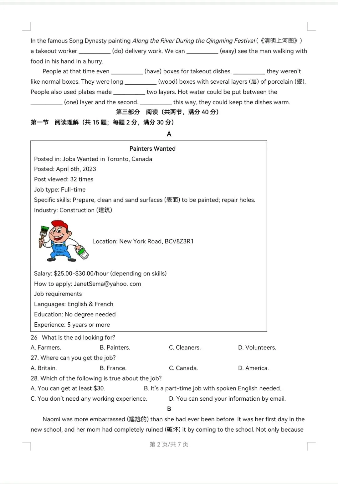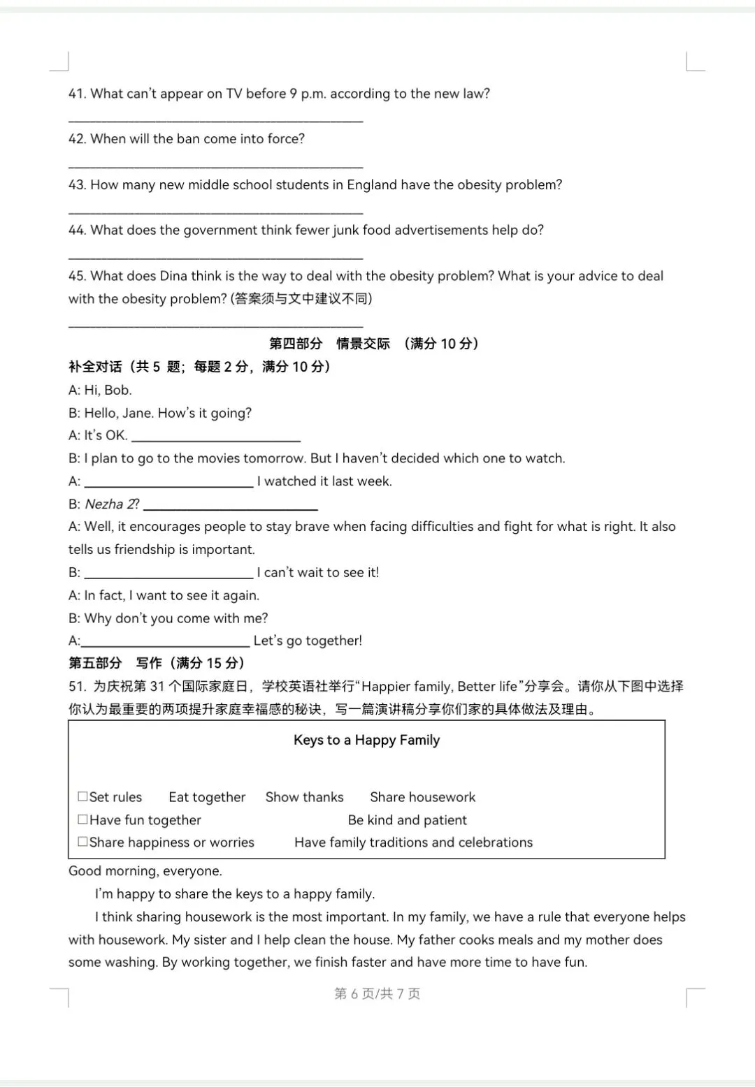 >河北省石家庄市第81中学2025年九年级下学期3月开学考英语