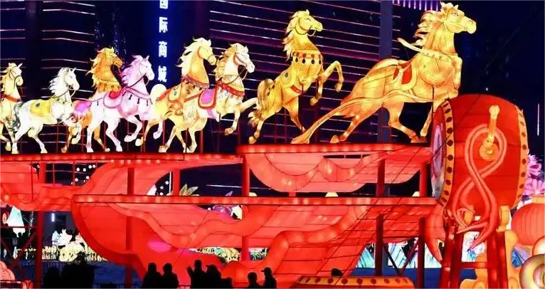 正太广场以“马跃新程”为主题,打造庄重雅致的城市新春灯会,以“骏马迎春”、“策马新程”、“龙马精神”等为主题的展区灯组工艺精湛。红金配色大气喜庆,马年元素寓意吉祥。