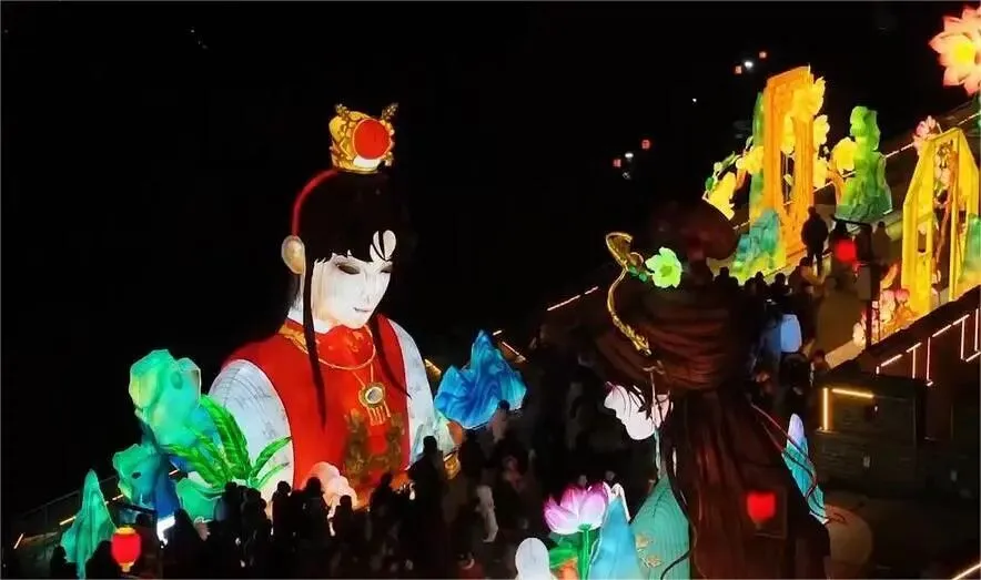 作为市区核心网红打卡地,湾里庙灯会将非遗工艺与现代潮流完美融合。长信宫灯、天马行云、财神纳福等大型灯组在夜幕下依次点亮。这里既是赏灯胜地,也是亲子游玩、好友相聚的绝佳去处,赏灯、美食、购物一站式体验。