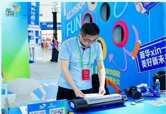 新华保险河北分公司在博物院北广场与火炬广场设置赛后展示区,打造号码簿塑封区,为跑者永久定格这份“石马”专属荣耀;设立拍照打卡区,定格跑者荣耀时刻;进行礼品发放,让品牌的温度在互动中与跑者紧紧相连。