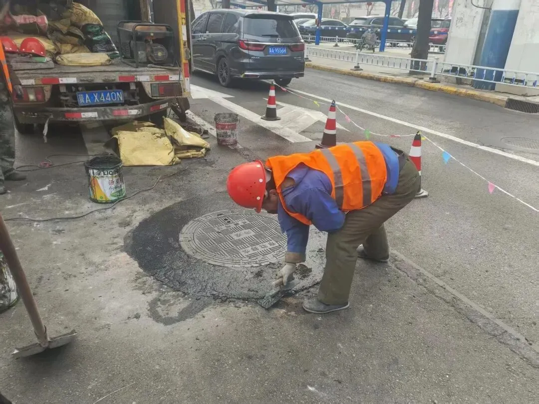 “为进一步提升井盖维修质量、提高管护效能,市排水管护中心积极探索创新,引入高强度黑水泥材料维修工艺。”牛棒解释,该工艺具有修复不受气温限制、维修过程无需机械碾压、维修质量持久耐用等优势。目前,该工艺已在市区不同道路试点应用,效果良好,后续将在条件允许的前提下逐步推广,持续提升井盖管护标准化水平。