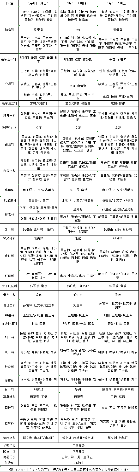 【看津冀名医 到市中医院】石家庄市中医院门诊医生出诊时间表(2026.3.1-2026.3.6