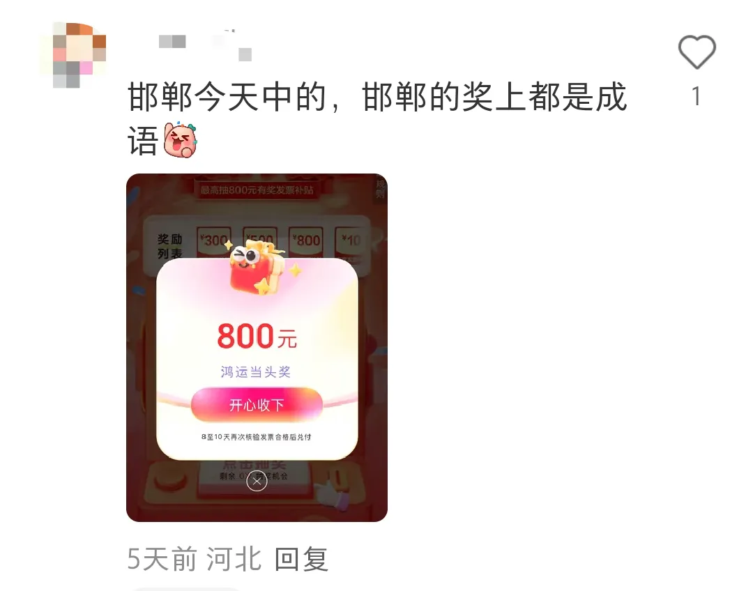 成功抽中800元!