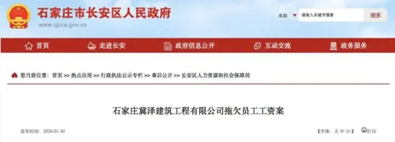 据石家庄市长安区人民政府官网公开信息,近期,因拖欠工人工资