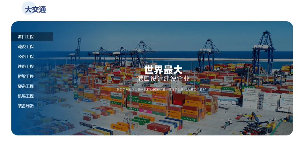 目前,中交集团是世界最大的港口设计建设公司、世界最大的公路与桥梁设计建设公司、世界最大的疏浚公司、世界最大的集装箱起重机制造公司、全球领先的海上钻井平台设计公司和设备提供商;是亚洲最大的国际工程承包公司、中国最大的高速公路投资商。