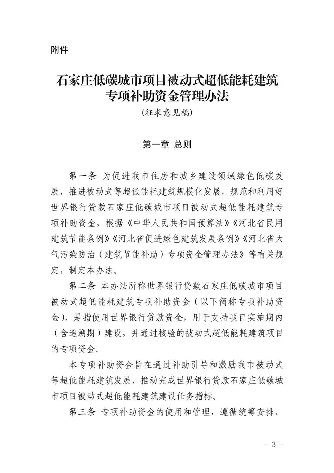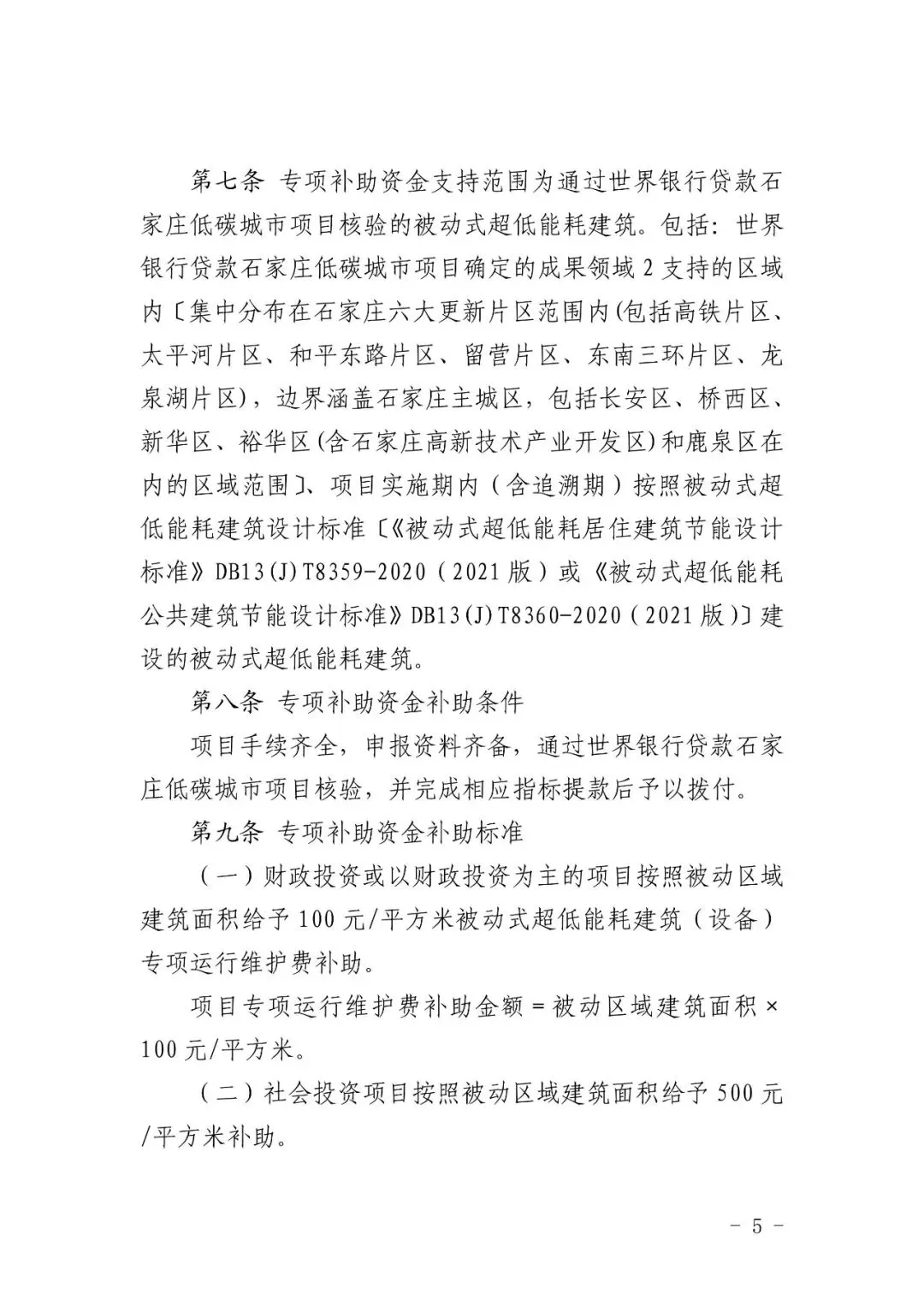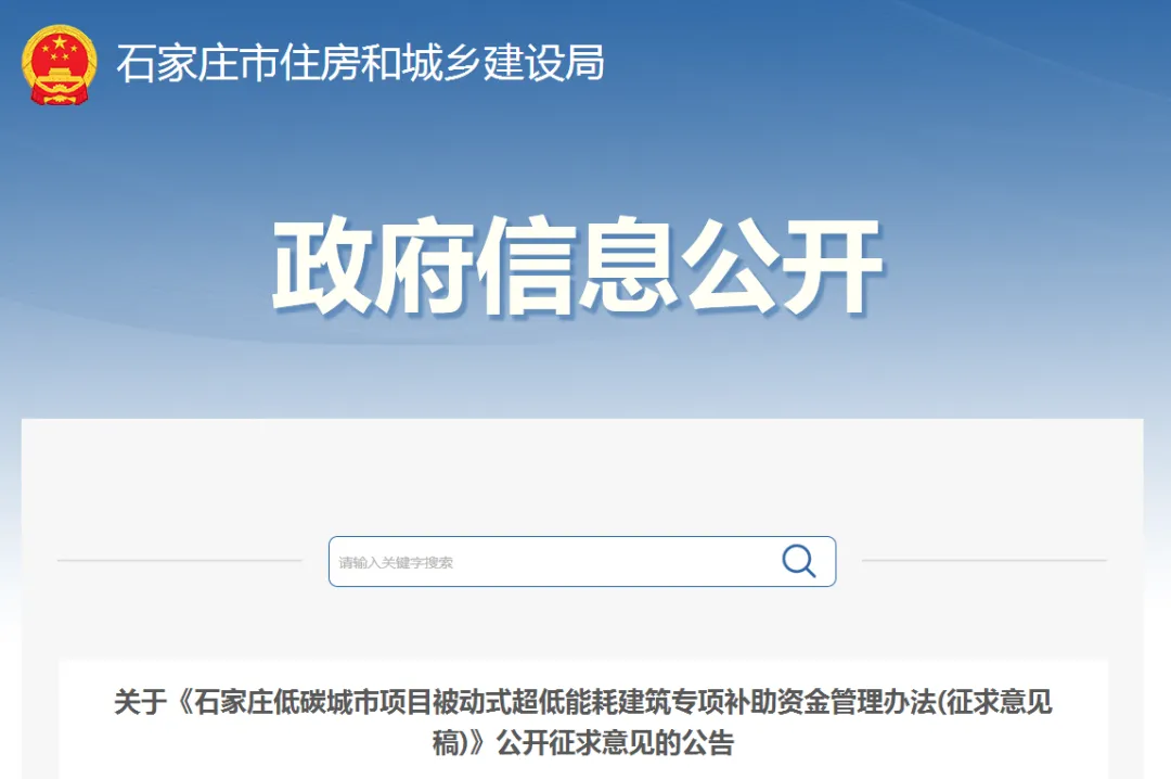 >《石家庄低碳城市项目被动式超低能耗建筑专项补助资金管理办法》