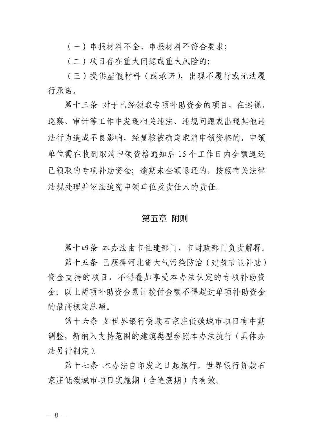 《石家庄低碳城市项目被动式超低能耗建筑专项补助资金管理办法》