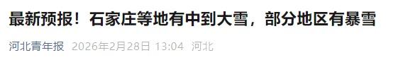 河北中南部地区主要降水时段在3月1日白天到夜间,降雪量可达中到大雪,部分地区暴雪;