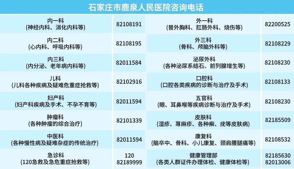 2. 如遇特殊天气或其他不可抗力,义诊时间可能会有调整,我们将第一时间在“石家庄市鹿泉人民医院”公众号发布通知。