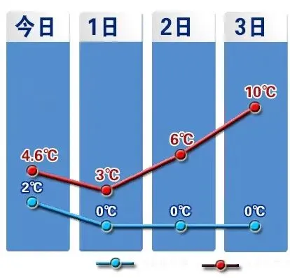 ✅从气温方面来看,明天的气温还会继续下滑,最高温度将降至3℃左右,最低温度在0℃上下。