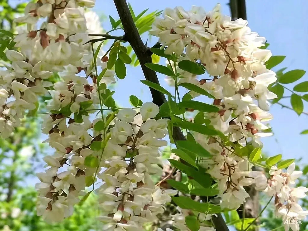 除了麦浪,当然还有美味的槐树花,槐树花和葡萄一样,都是一串串的挂在树上,槐树花特别香,花芯也是甜的,我们那时候都是一边走路,一边扯槐树花芯放嘴里吸蜜汁,别提多舒服惬意了。