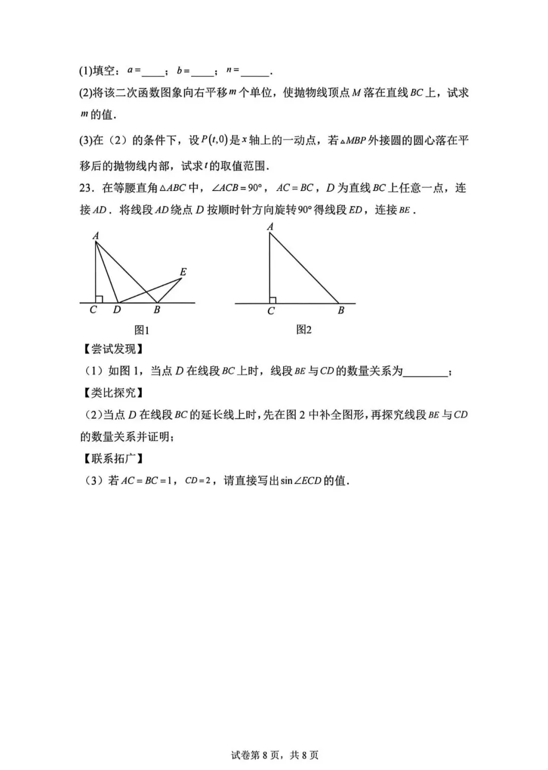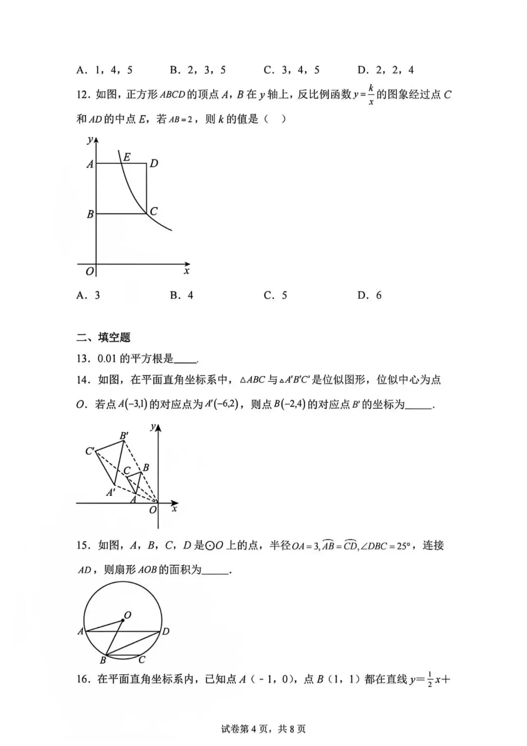 2026.1河北省九年级结课考试数学试卷
