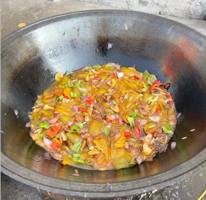 大锅菜:这是本地人的魂。不像精致料理,它就是乱炖。五花肉切片爆香,扔进海带、白菜、粉条、豆腐,大火咕嘟。肉味渗进菜里,菜汁裹着肉,粉条吸饱了汤,变得晶莹剔透。盛出来时热气腾腾,配个馒头,吃得就是那股子热乎劲儿,胃里踏实,人也舒坦。