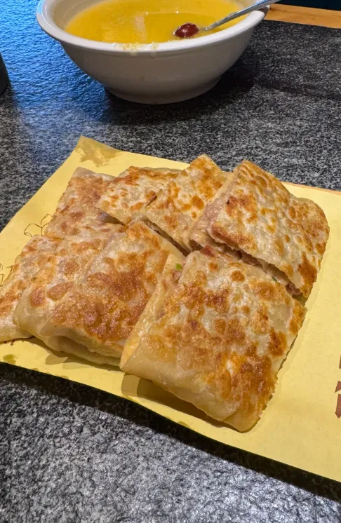 这饼讲究的是“皮薄如纸,肉厚如墩”。师傅手快,面皮在案板上被甩得啪啪响,裹上满满的肉馅,在油锅里滋啦一声。出锅时,外皮焦黄酥脆,咬开一个小口,热气混着油香扑面而来,肉汁顺着嘴角流。吃这饼,得趁热,得不怕烫,一口下去,你就懂了什么叫北方人的实诚。