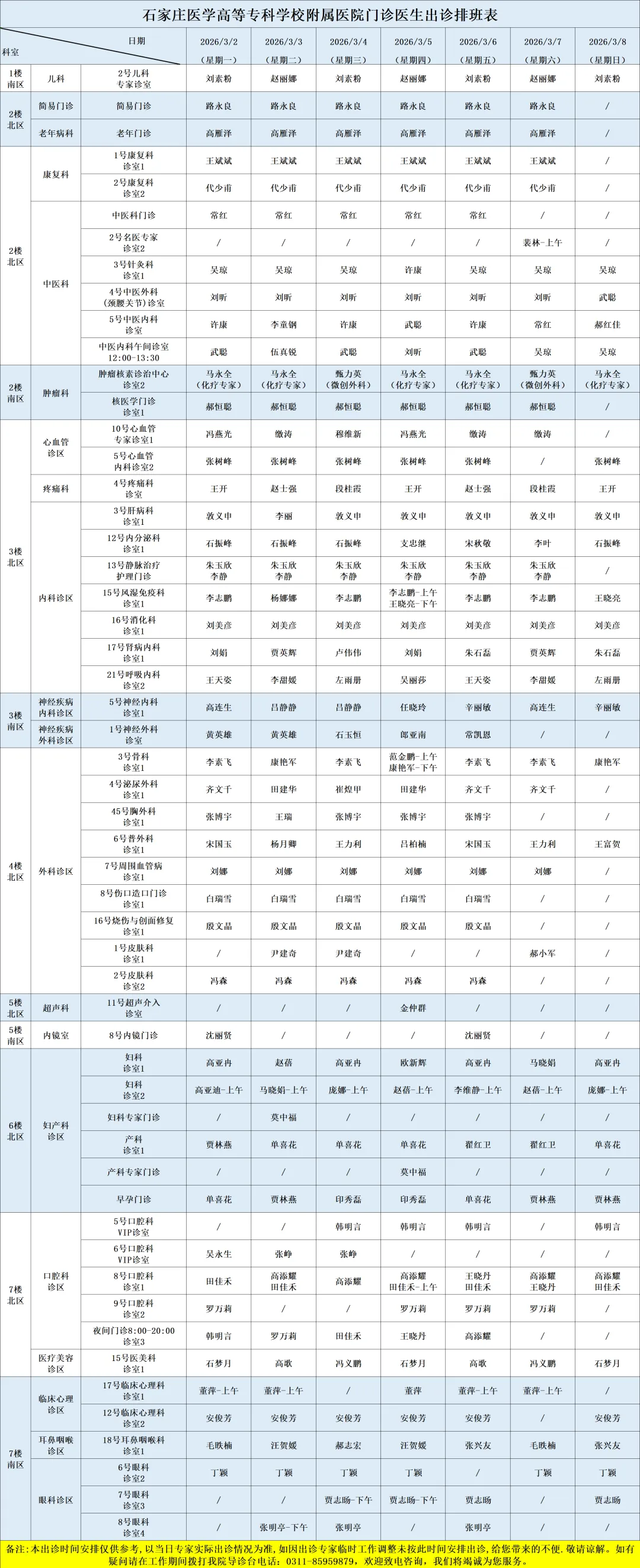 医院开设预防保健科、内科、外科、妇产科、儿科、眼科、耳鼻喉科、口腔科、皮肤科、医疗美容科、肿瘤科、急诊科、重症医学科、康复科、麻醉科、医学检验科、病理科、医学影像科、中医科等50余个一、二级临床、医技科室,能够完成疑难、危重患者的多学科综合治疗。