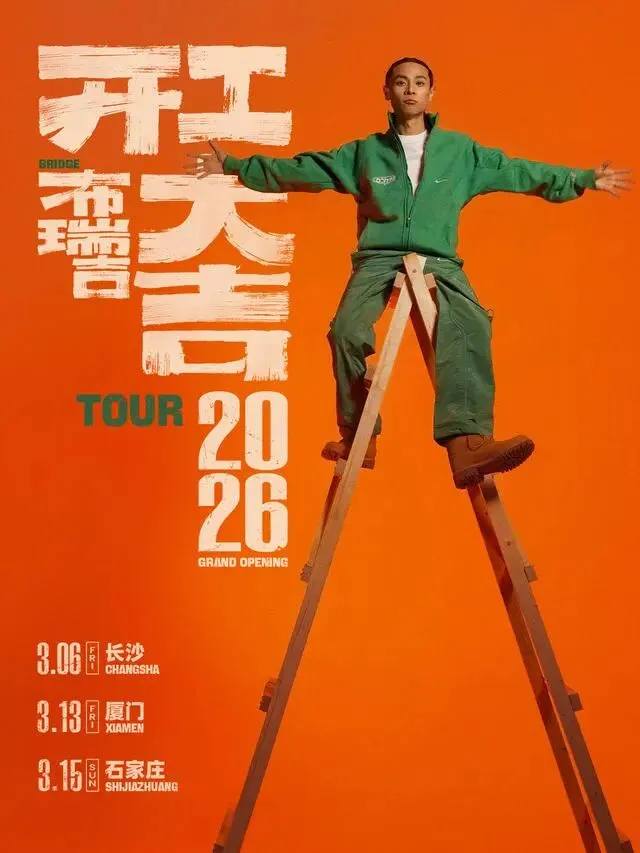 从《023%》到《一脉相承Hood&Family》,在布瑞吉的音乐疆域里,没有格子间,只有无限炸裂的舞台。2026,布瑞吉《开工大吉》巡演带着最燥的现场、最猛的节奏,为你的崭新篇章注入第一波高能LIVE音浪。用最real的勇气与热情,直面未来挑战与掌声。