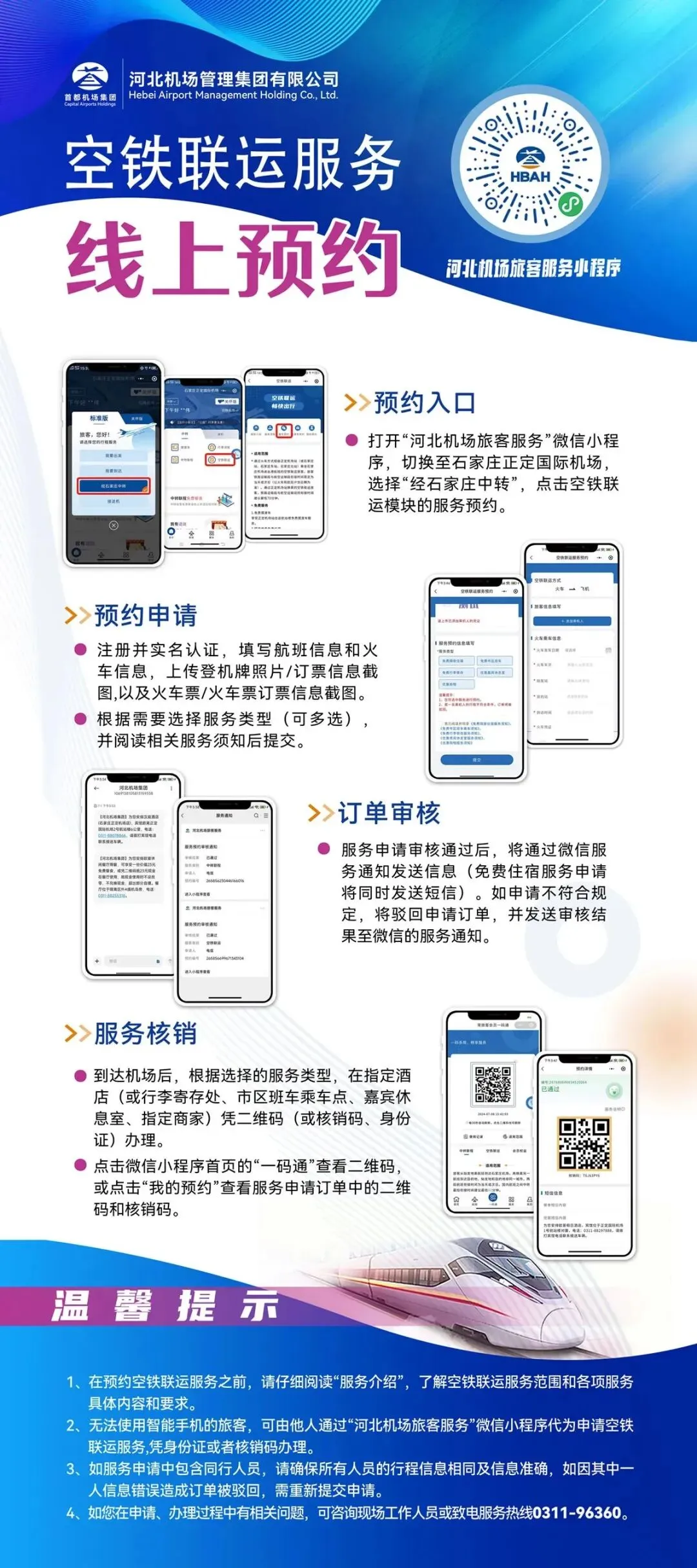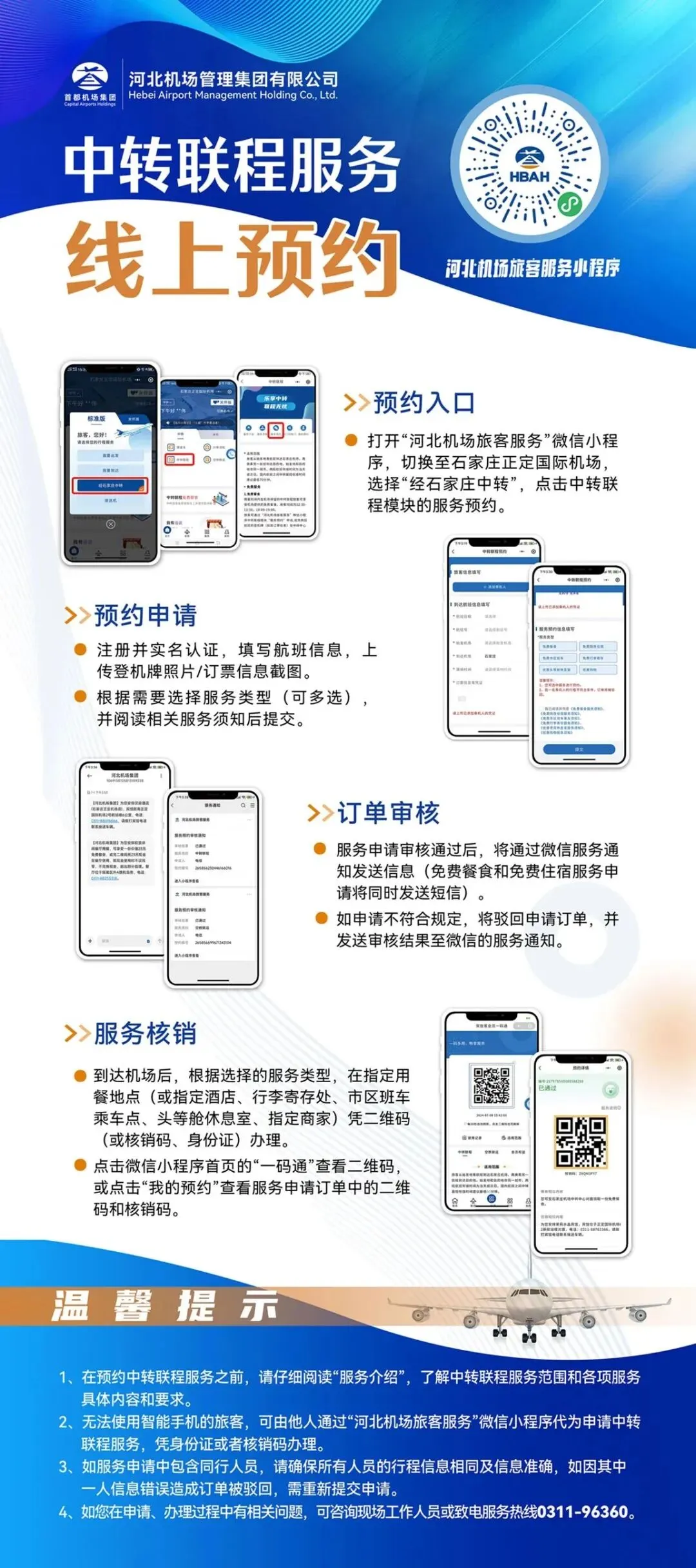 一次性预约免费餐食、免费住宿、行李寄存等多项服务,只需要出示二维码或者身份证就可以完成核销。近日,石家庄正定国际机场(简称“石家庄机场”)中转服务“一证(码)通”上线,旅客登录“从家飞”旅客服务平台的“河北机场旅客服务”微信小程序即可预约享受相关服务,进一步便捷了中转联程和空铁联运旅客的出行。