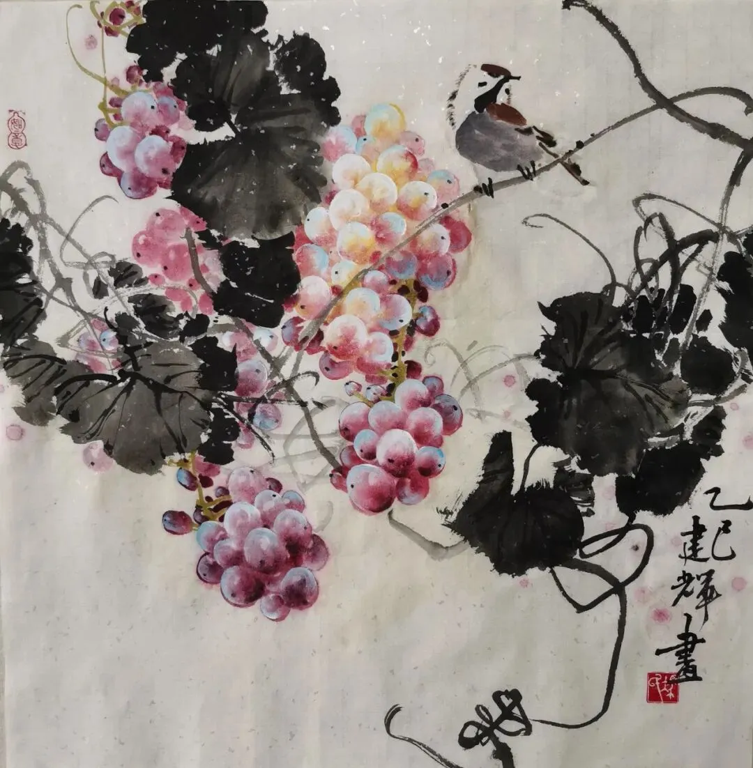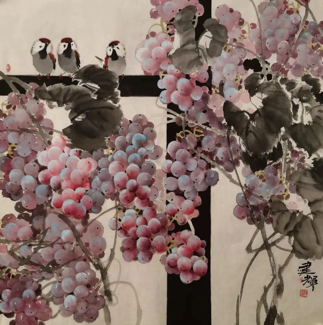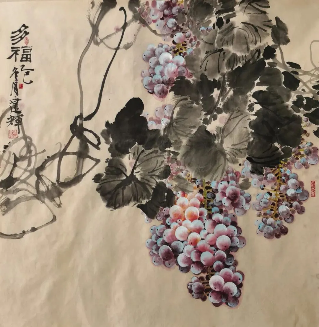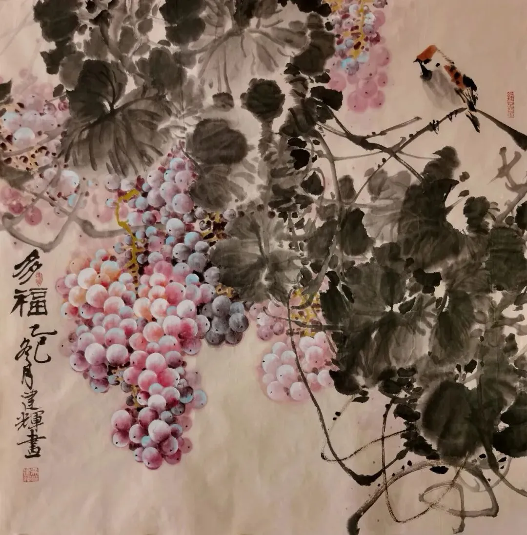 当代国画领域,葡萄题材虽常见,却鲜有画家能如冯建辉这般能将这一传统意象演绎得如此鲜活灵动。