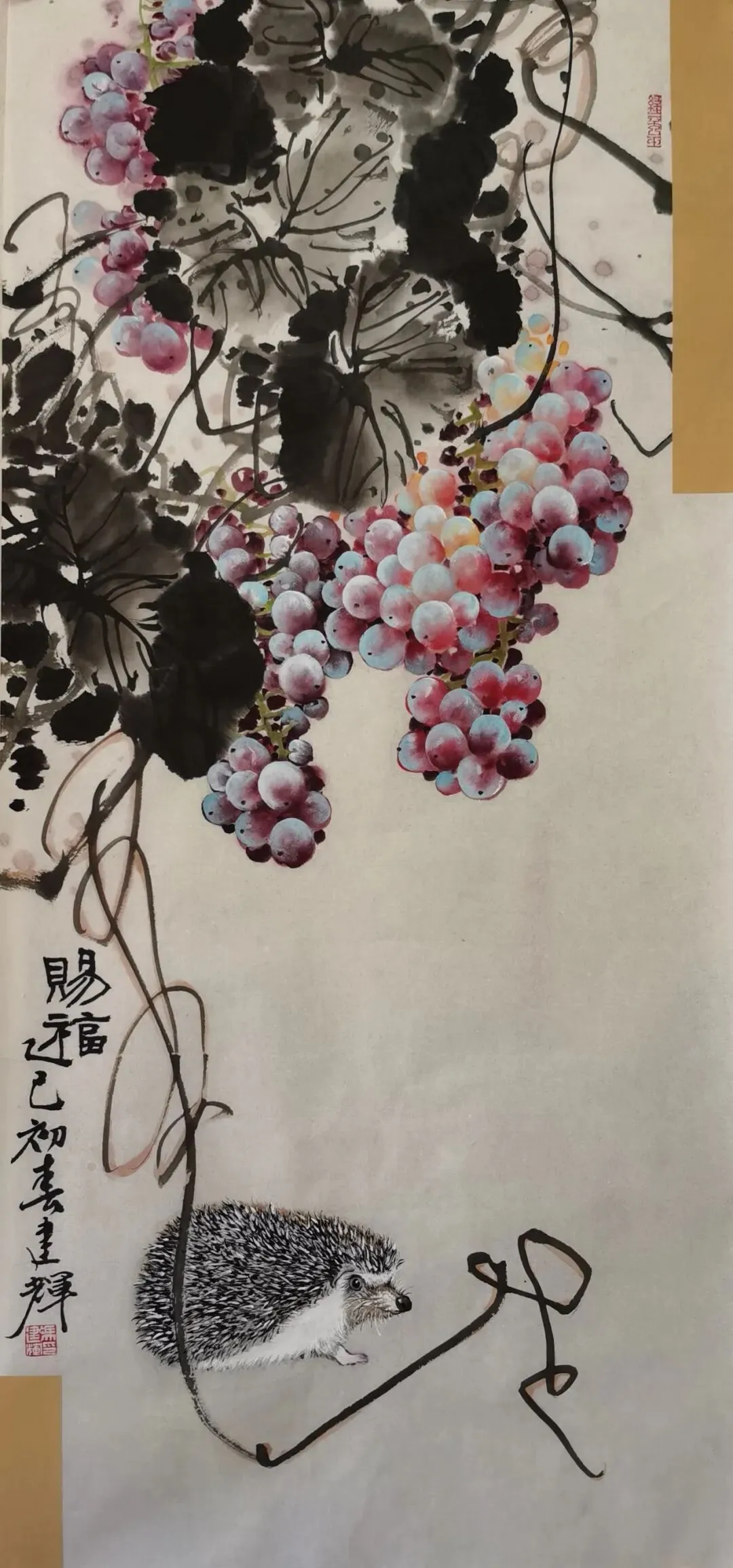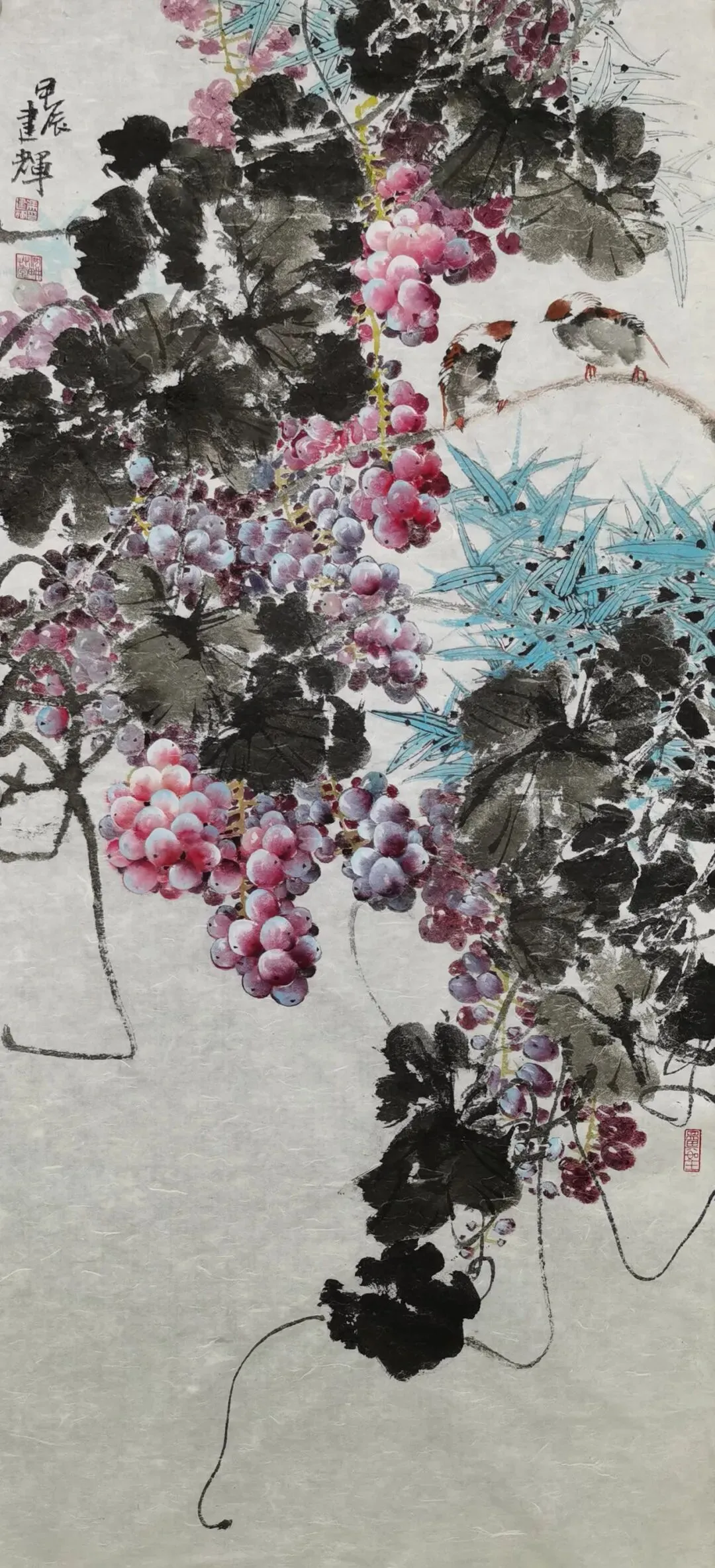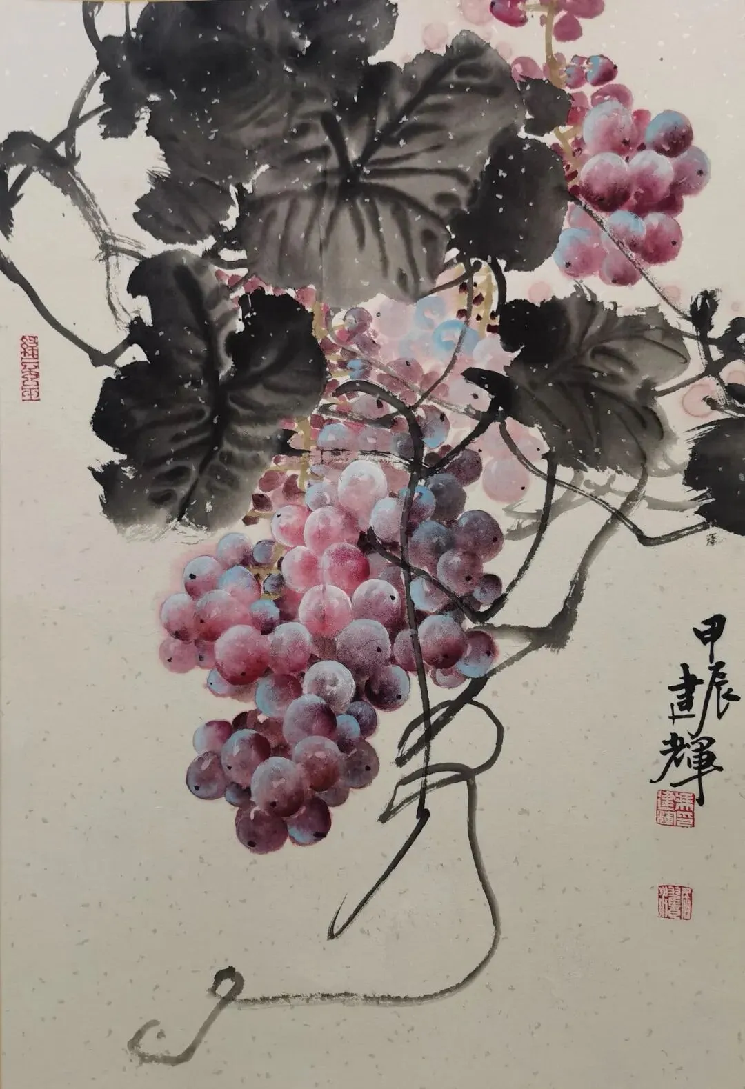 当代国画领域,葡萄题材虽常见,却鲜有画家能如冯建辉这般能将这一传统意象演绎得如此鲜活灵动。