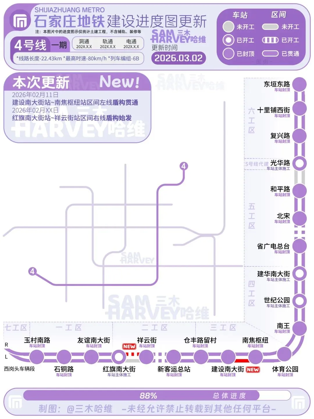 以下为各线路土建工程进度速览(注:仅包含车站、隧道等土建部分,不含后续机电安装、装修等工程)