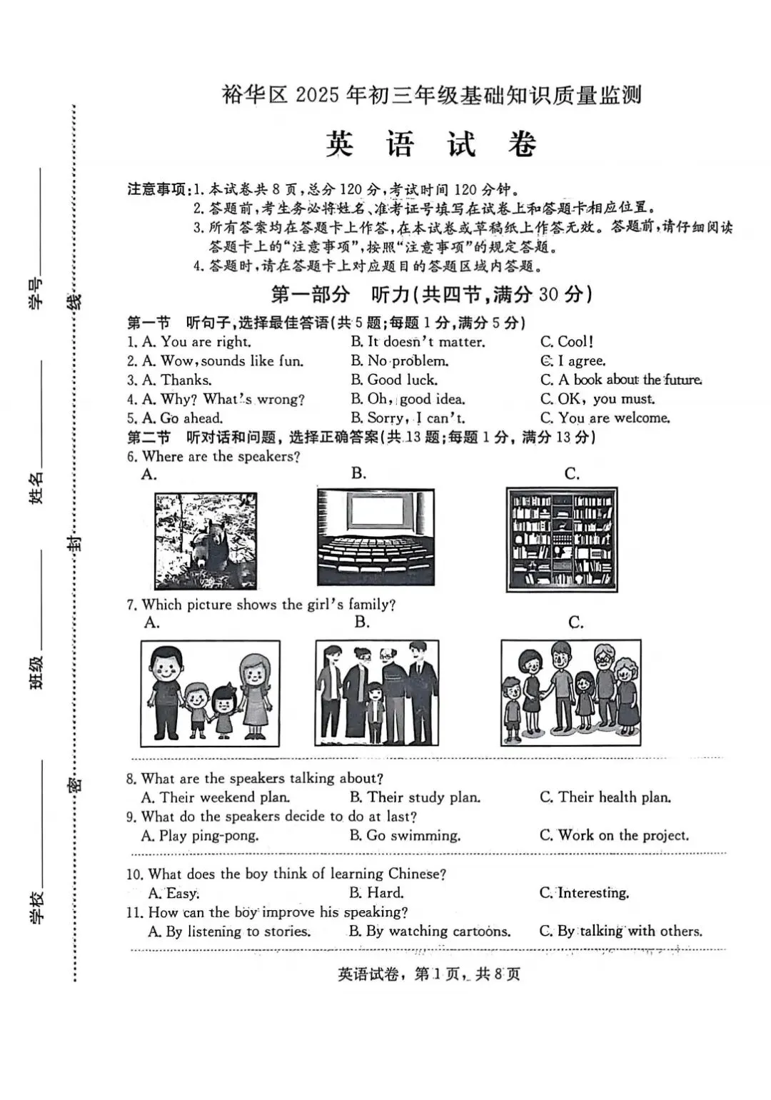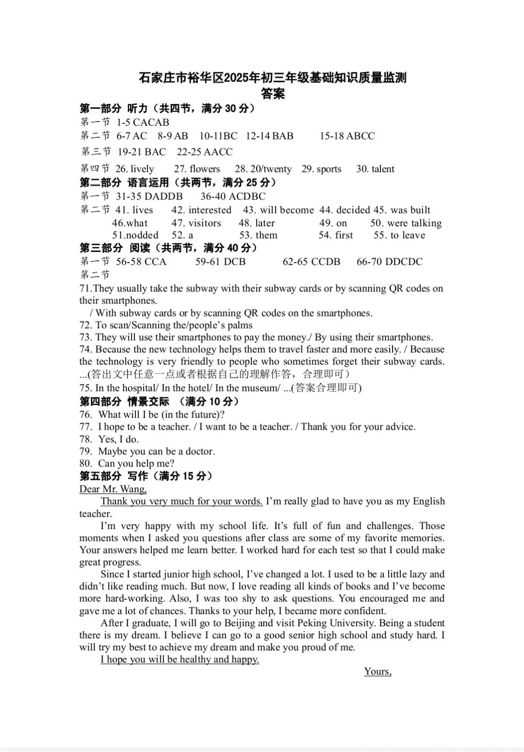 >河北省石家庄裕华区2025.3初三质量监测(一模)