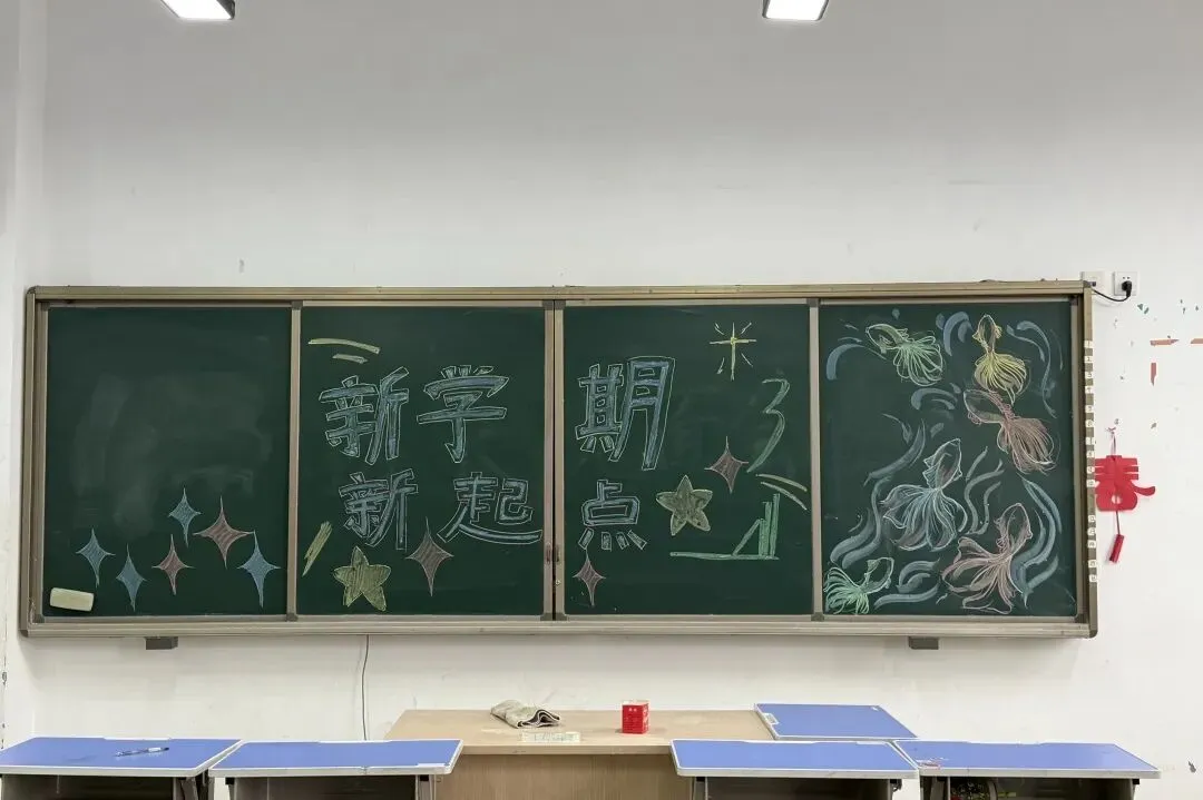 教室里,老师们执笔为刃,以粉笔为墨,绘就斑斓黑板报。一笔一画藏期许,一字一句寄初心,把对新学期的美好祝愿,融进色彩与文字里。