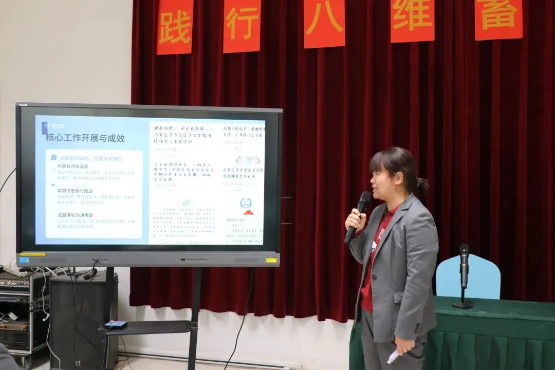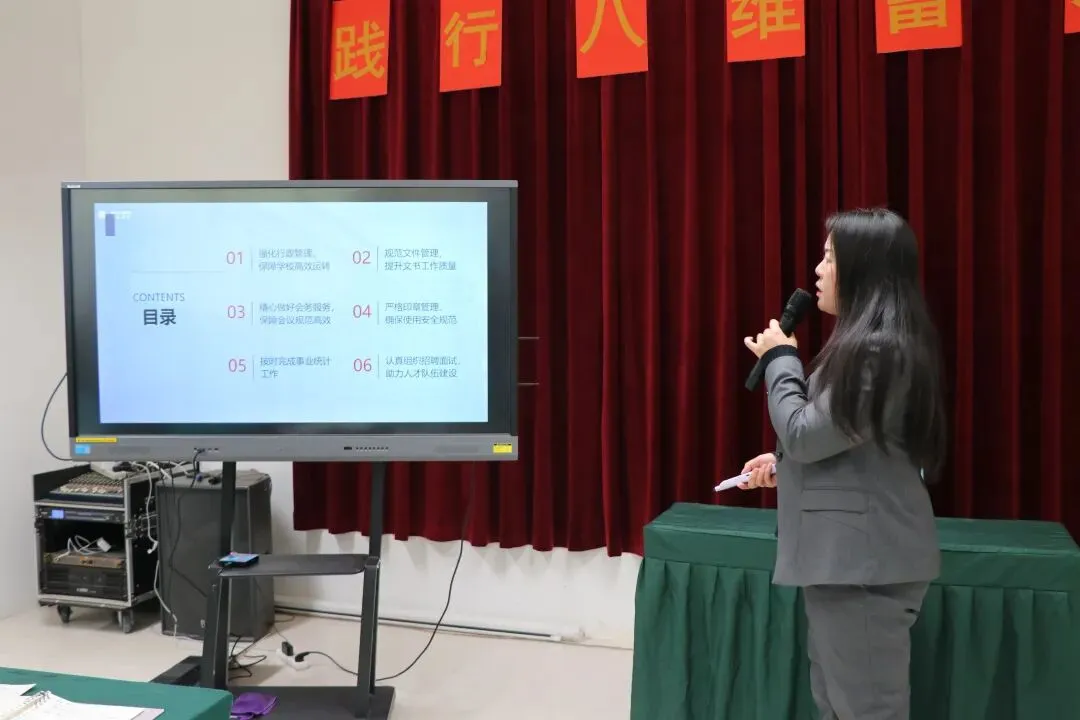 会议伊始,教育、教学、招宣、校办公室负责人上台做精彩述职。述职中全面回顾了过去一学期学校在各方面取得的丰硕成果,各部门同心聚力,践行着我校“健康、求知、自信、律己、理智、胸怀、通达、感恩”的八维培养目标,用详实的数据和生动的案例,展现了全体教职工在学校建设、教学改革、课程升级、学生发展等方面付出的努力与汗水。同时,领导们也深刻剖析了工作中存在的不足与面临的挑战,为新学期的工作改进提供了清晰的方向。