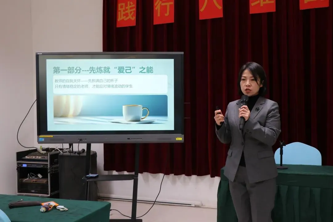 下午的培训转向教师的内功修炼与人文关怀。学校专职心理专家为全体教职工带来了一场题为《守住“心”能量,沟通“心”距离》 的精彩讲座。