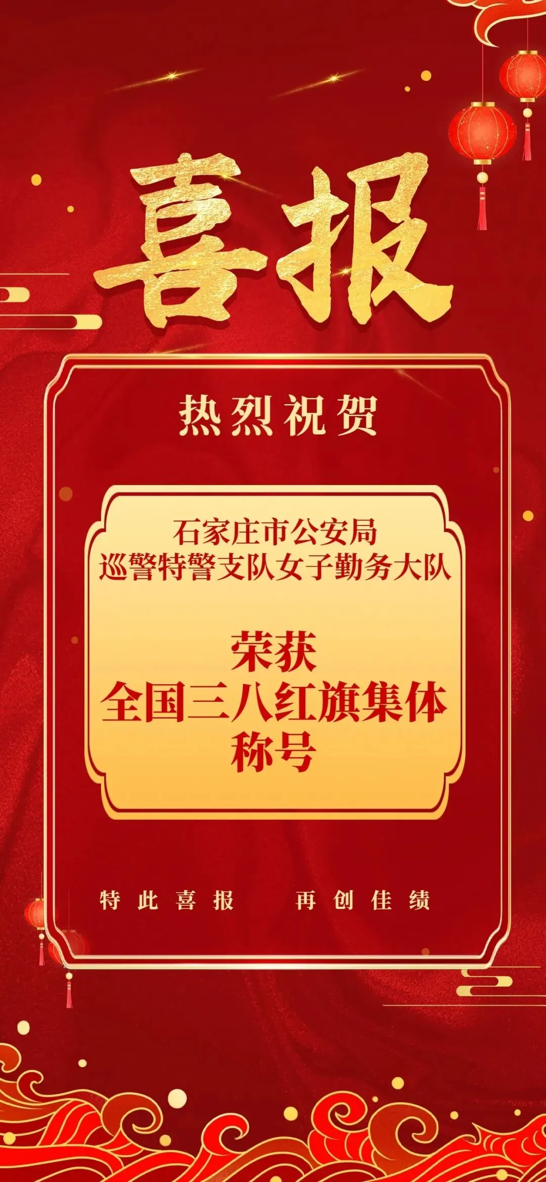 喜报!石家庄市公安局巡警特警支队女子勤务大队荣获全国三八红旗集体!